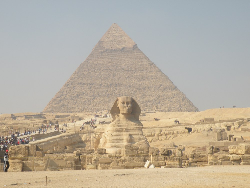 La sabbia del terreno di Giza mi sta imbiancando le scarpe mentre la guida accompagna il nostro gruppo verso la Sfinge. Ad un primo sguardo mi pare più piccola di quanto me la immaginavo ma in realtà esattamente uguale a come la avevo vista sulle fotografie dei libri di storia. Con la testa di un faraone ed il corpo di leone, sdraiata maestosamente, la Sfinge rivolge lo sguardo verso quello che una volta doveva essere il Tempio della Sfinge. Dietro le sue spalle completano la cartolina le tre Grandi Piramidi, delimitando quello che oggi gli archeologi chiamano la Necropoli di Giza. Situata alla periferia del Cairo, a circa 8 km dall’antica città di Giza sul Nilo, la Necropoli di Giza costituiva una delle necropoli di Menfi, l’antica capitale dell’Antico Regno. Le immagini tramandate dai libri di storia fanno immaginare le Piramidi situate in qualche regione desertica ma in realtà l’intero complesso oggi è circondato dalle palazzine della popolosa area urbana.