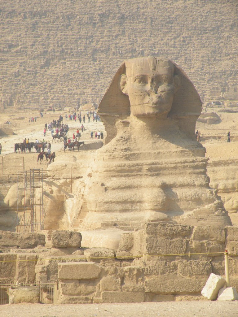 Oggi il volto è privo del naso. Non fu staccato dalle truppe napoleoniche, come largamente creduto, bensì già nel XIV secolo per opera di un mamelucco, che stando alle fonti, irritato per le offerte che i contadini offrivano alla Sfinge, tentò di distruggerla. Tuttavia la Sfinge pare infischiarsi del tempo e continua ad esercitare il suo fascino incredibile ancora oggi.
